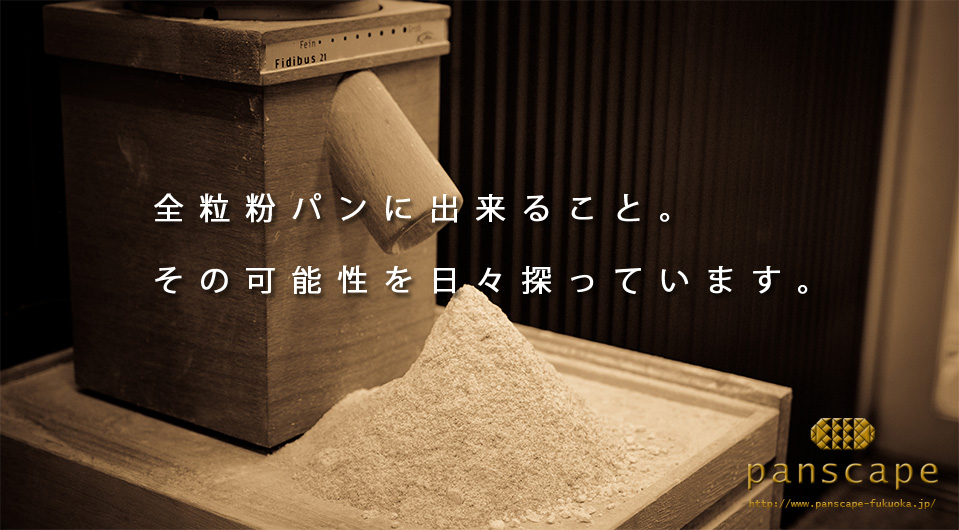 例えば、コーヒーが挽きたての豆で入れると香りが良いように、蕎麦も挽きたてのそば粉で打ったそばが美味しいように、私たちパンスケープは小麦を玄麦の状態で仕入れ、店内の石臼で挽き新鮮な全粒粉を使ってパンを作っています。